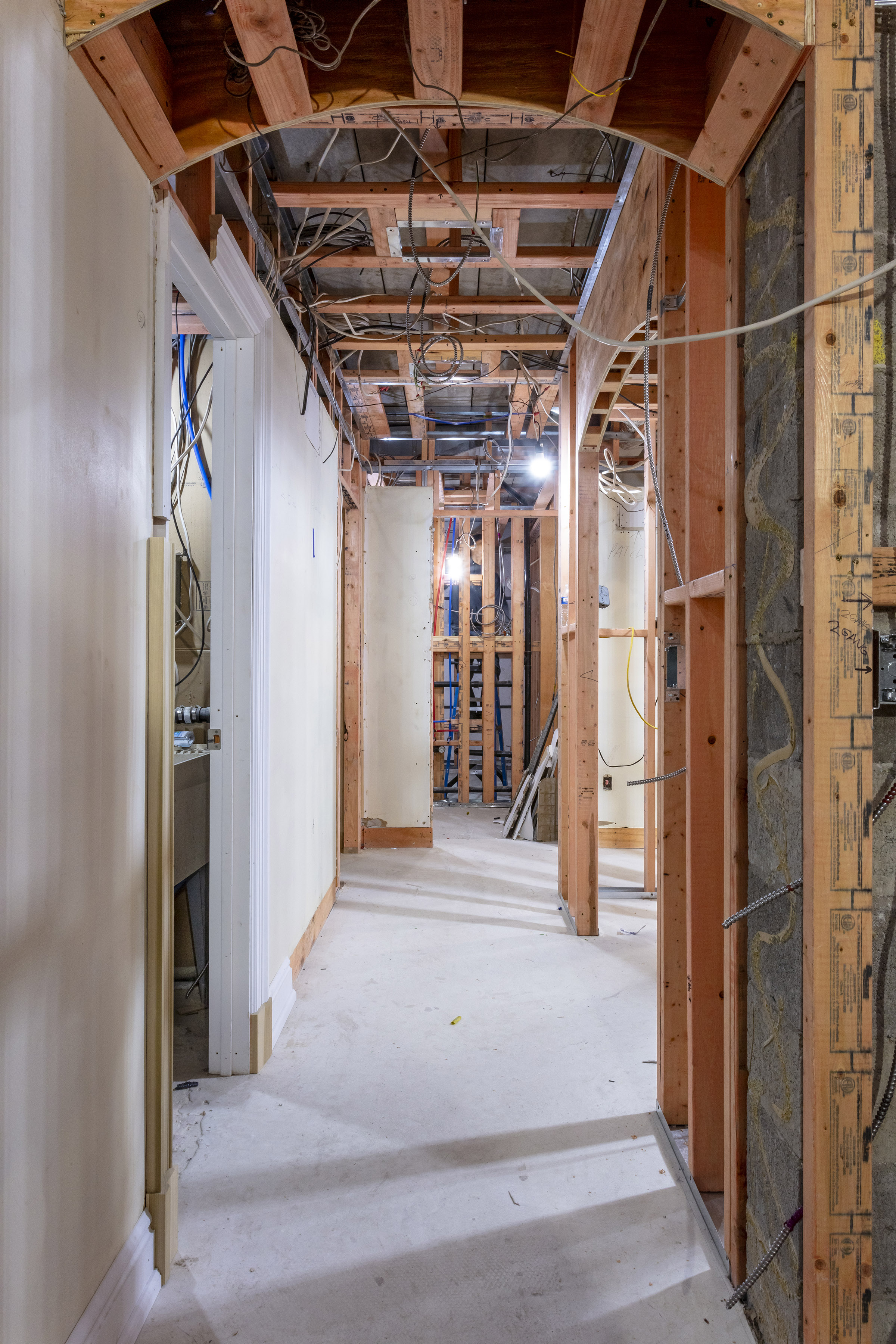In the basement of a historic church, these units began as blank slates. Our team collaborated with the homeowners to create functional yet practical living spaces that highlight the building’s character. Tall ceilings and enlarged door openings enhance the airy feel, while tray lighting adds a warm, modern touch. Finished with high-end details, these condos strike the perfect balance of industrial charm and contemporary style.