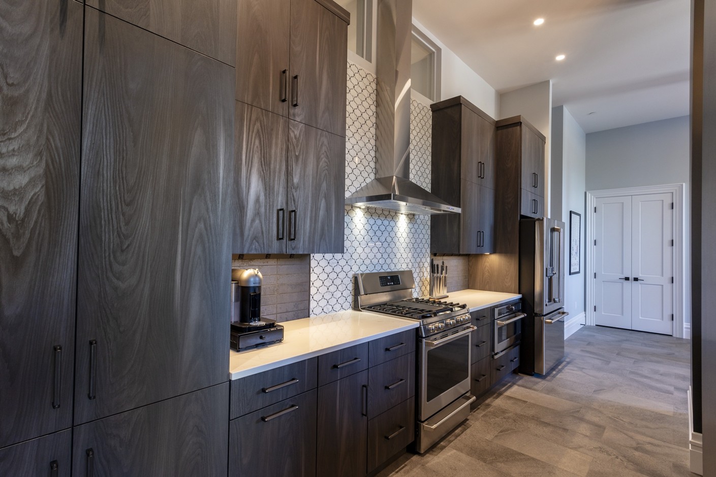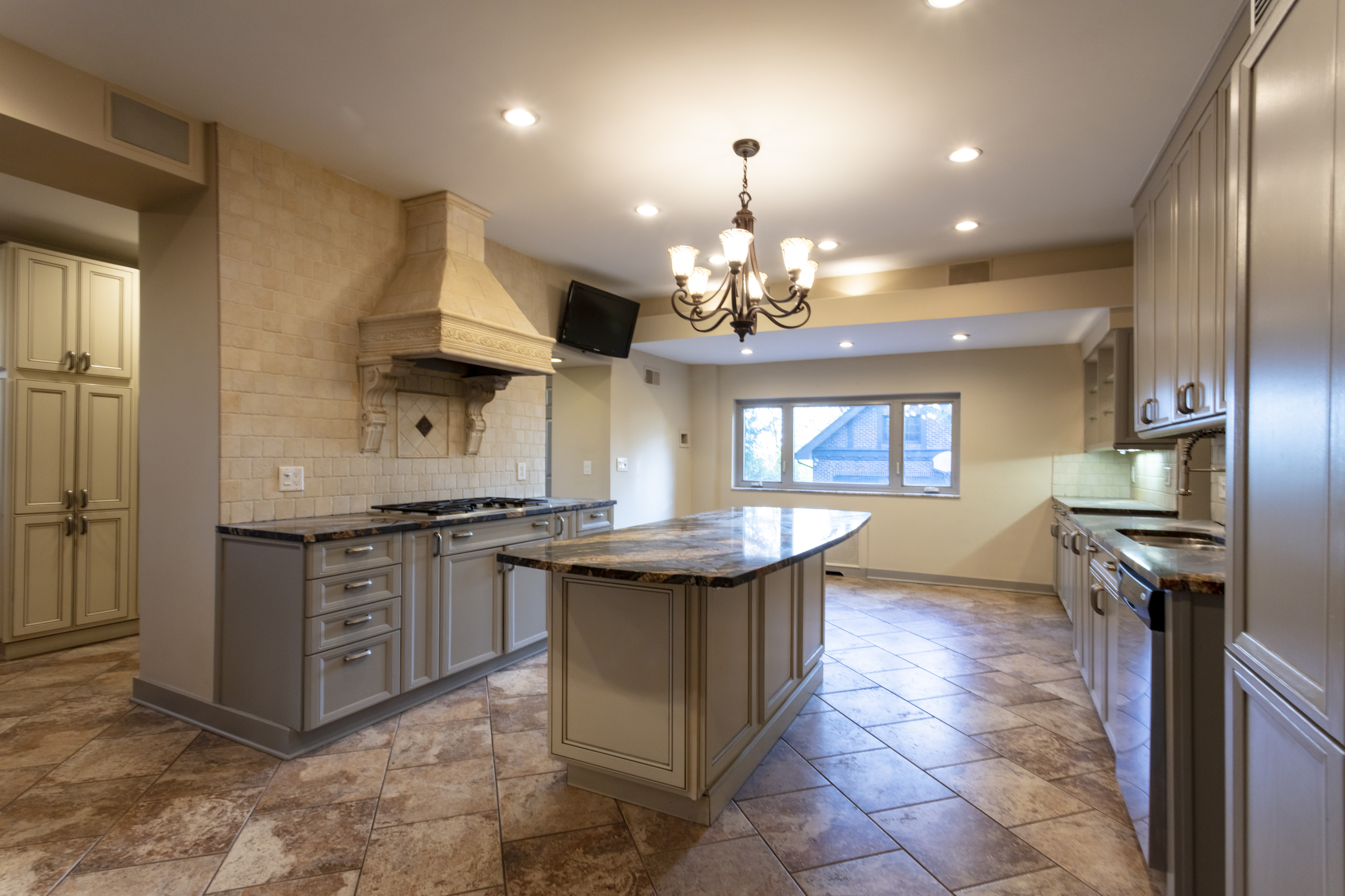 This traditional modern refresh implements the form follows function design principle flawlessly with this open concept plan. Architectural changes included removing a wall separating the rooms. The sleek modern components are in perfect balance with earthy rich wood accents creating an open and inviting floor plan.