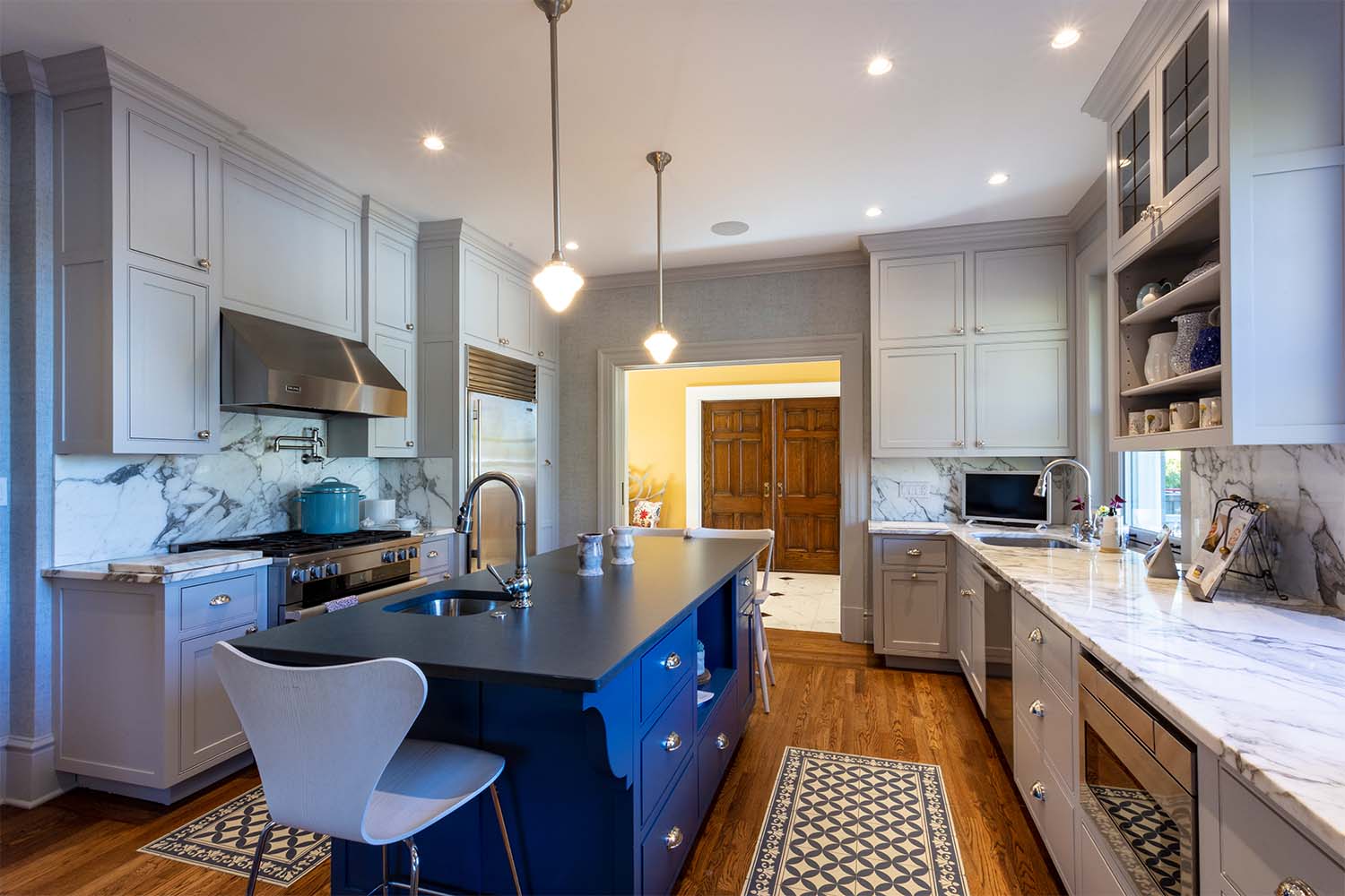 Within walking distance of Beaver Street in the heart of Sewickley and in partnership with Wildman Chalmers Design, we completed this kitchen renovation. The project consisted of the removal of a brick chimney in the rear of the home to open the space up and allow for a few new Kolbe windows to be installed on the second floor of the home, demolition of the wall the separated the kitchen from what was a dining room, installation of new Kolbe doors to create a more open, modern look in the space. All in all, this project turned out beautifully and we are proud that it was done by our team.